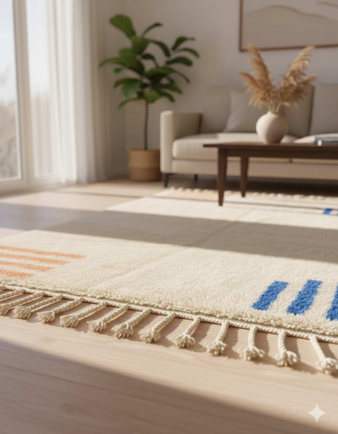 With vitality infused into every corner, the Azay rug features a natural wool base enriched with subtle coral and blue accents. Its refined tones and artisanal craftsmanship reflect the heritage of Morocco while offering modern sophistication. Belonging to our curated collection of luxury Moroccan rugs for sale in UK, the Azay combines comfort, durability, and style. Perfect for those seeking handmade rugs in the UK that enhance any interior with elegance and authenticity.